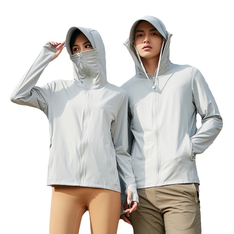 夏季轻薄防晒衣男冰丝凉感防紫外线户外防晒服女大帽檐透气皮肤衣
