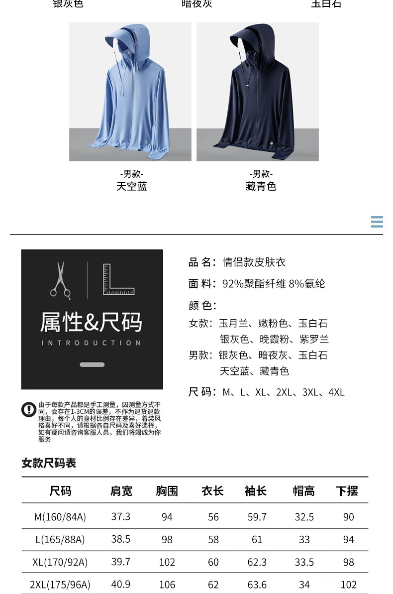 防晒衣连帽可拆卸高品质外套情侣夏季新款冰丝轻薄皮肤衣弹力男女