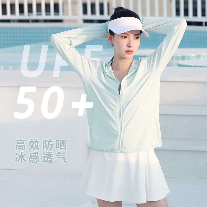 夏季新款防晒外套薄款连帽防晒服女户外长袖提花透气速干防晒衣女