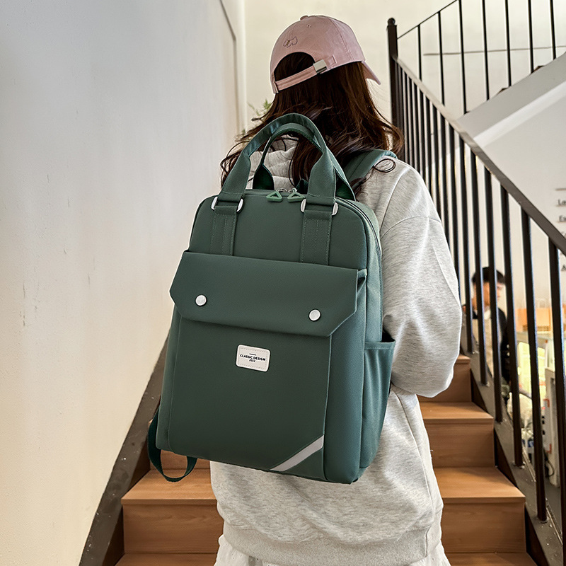 新款时尚百搭纯色休闲学生双肩背包旅行大容量手提两用多功能包