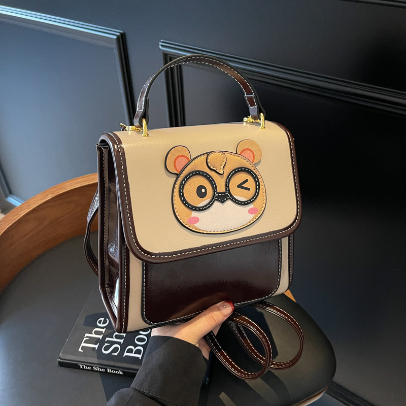 可爱小熊2025春季新款撞色卡通高级感手提斜跨百搭单肩包双肩包包