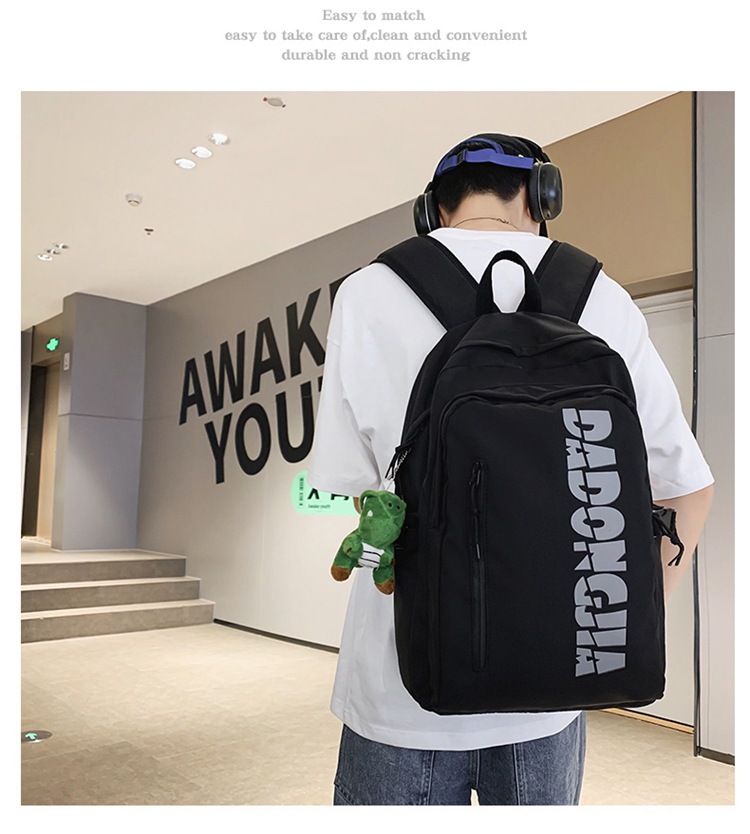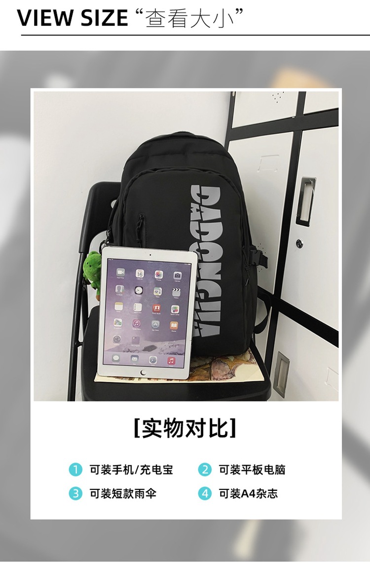 学生书包新款日系潮牌字母背包 大学生休闲旅行大容量双肩包