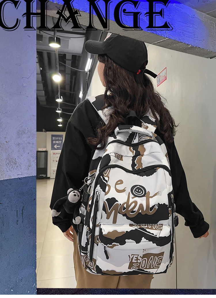 学生书包女新款涂鸦书包大容量双肩包 日系ins原创休闲背包