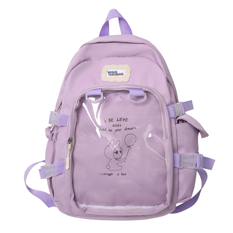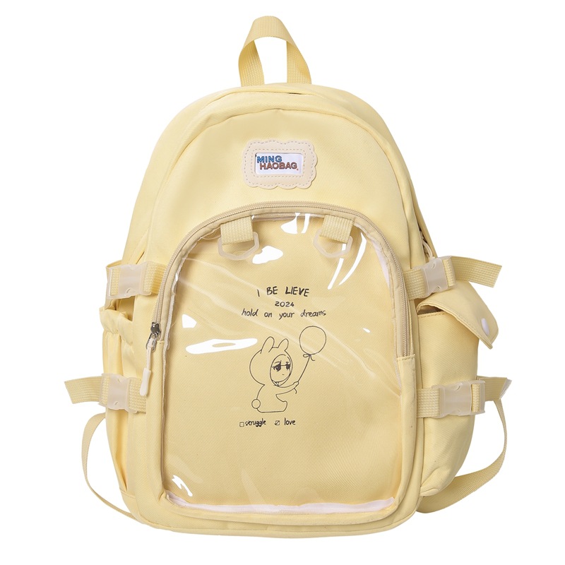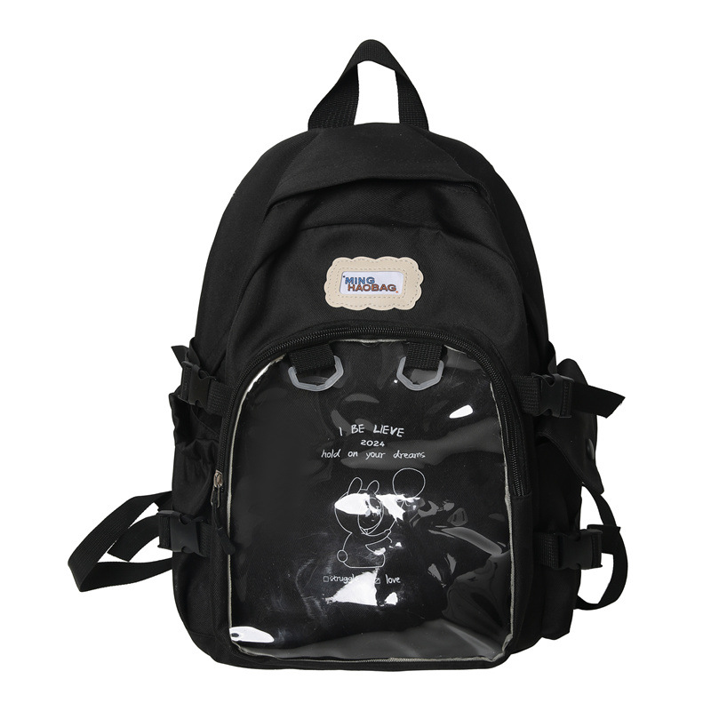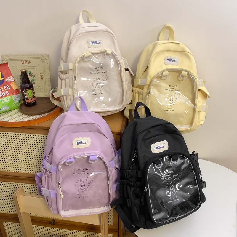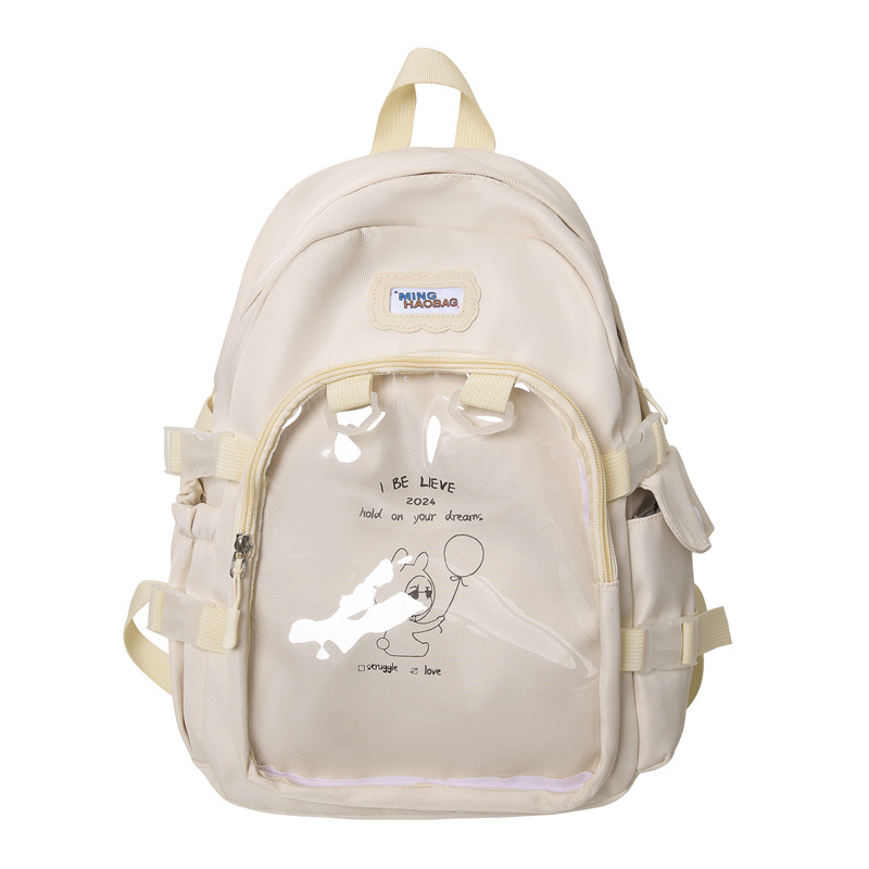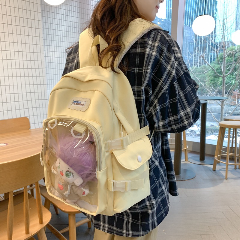 日系ins学生大容量双肩包学院风背包可爱简约透明带娃娃书包