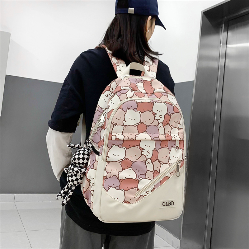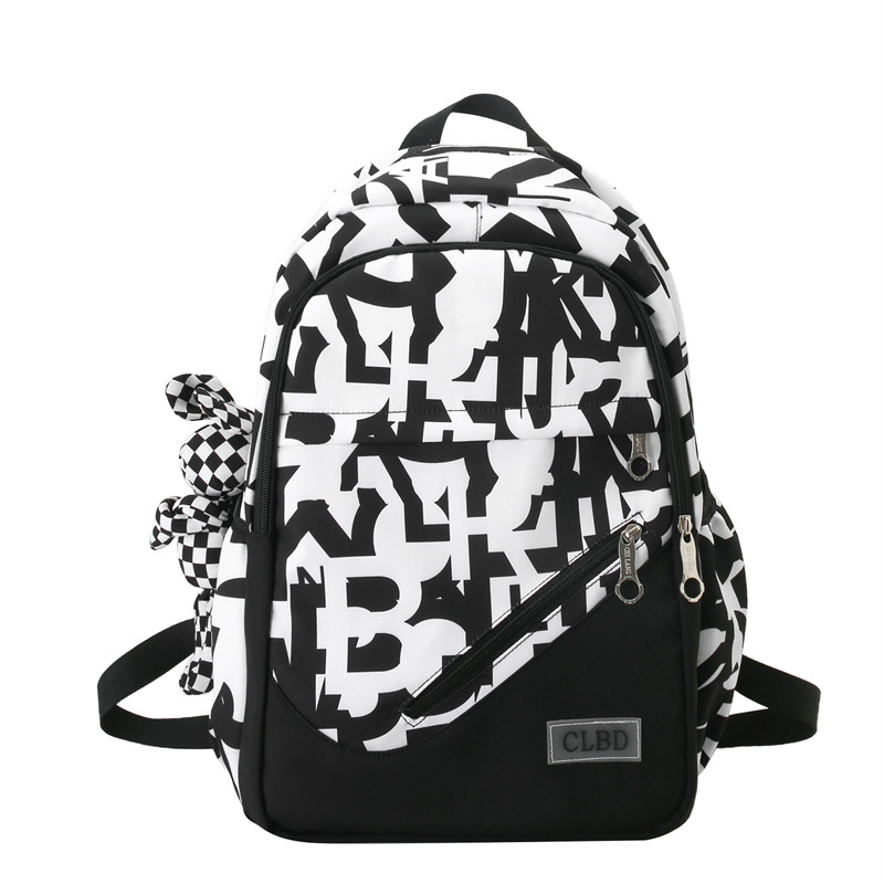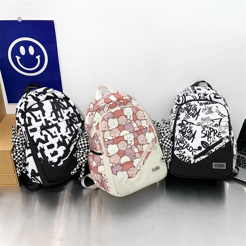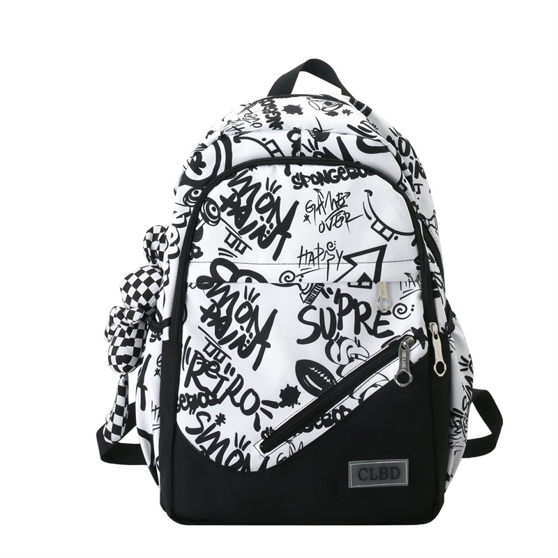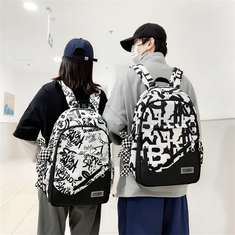 新款时尚潮流涂鸦背包休闲简约双肩包大容量中大学生校园书包