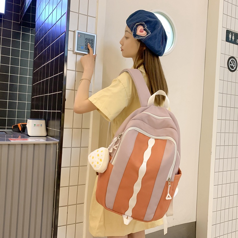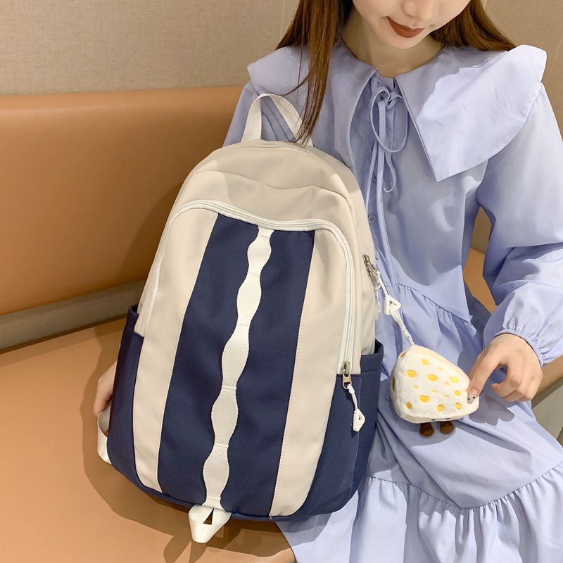 时尚撞色休闲双肩包新款女书包女大学生初中女生双肩背包女