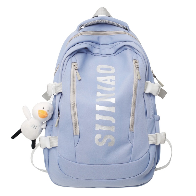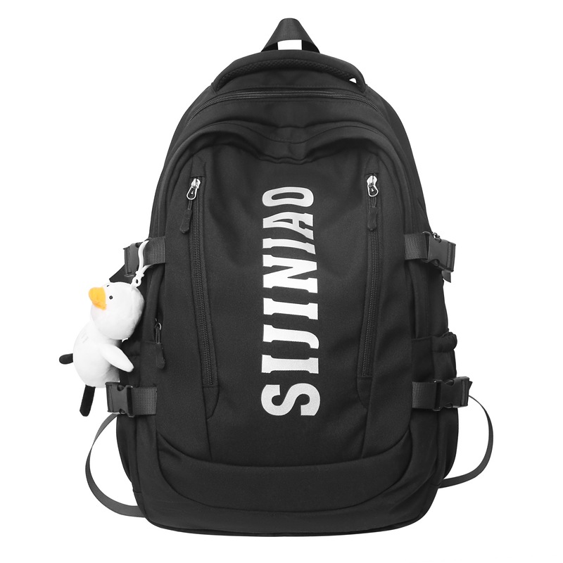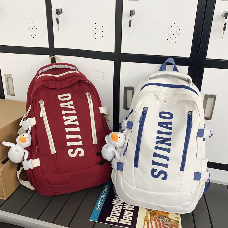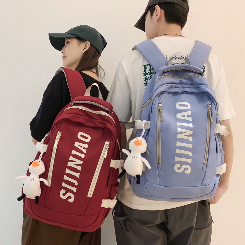 新款双肩背包女初高中大学生书包大容量休闲情侣款带挂件旅行双背