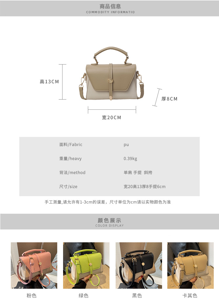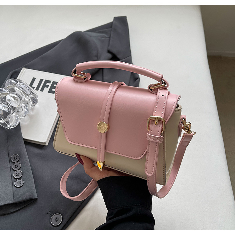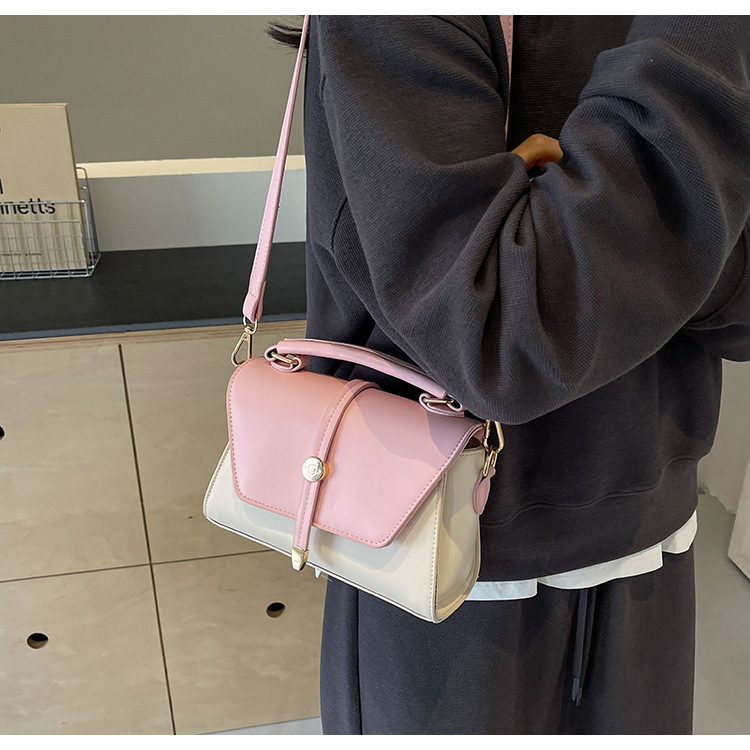 包包女时尚新款撞色手提小方包街头潮流百搭单肩斜挎包