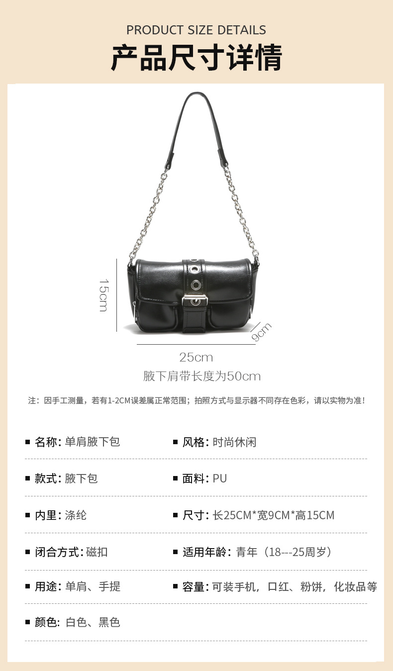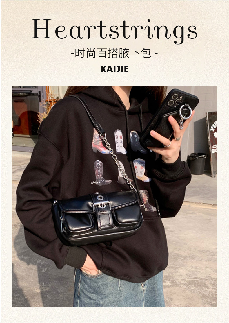 秋冬新款高级质感韩版链条腋下包单肩斜挎通勤法棍小包包女