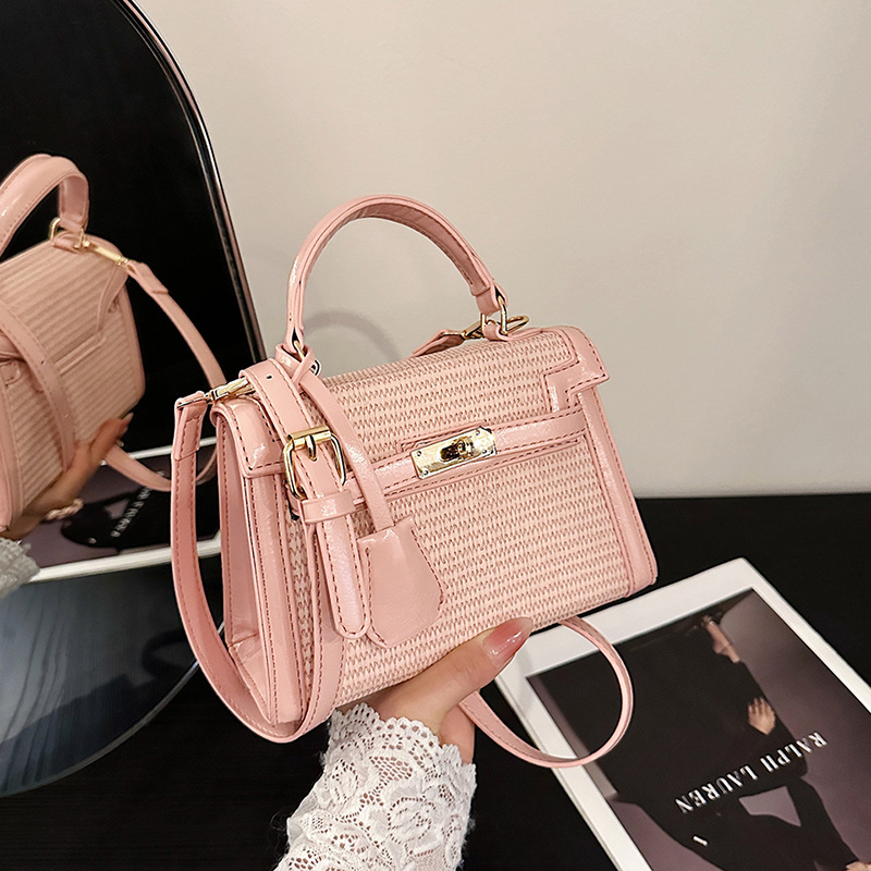 拼接质感手提凯莉包女2025新款休闲百搭单肩包时尚通勤斜挎包女包