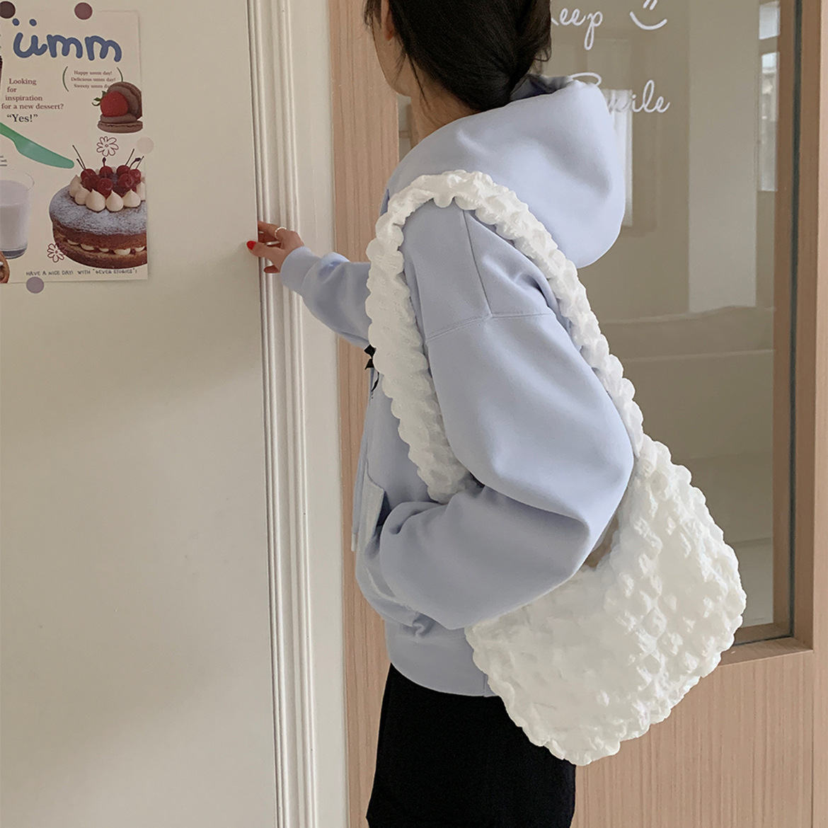 云朵褶皱泡泡腋下包百搭拉链单肩包大容量斜挎包学生上课帆布包女