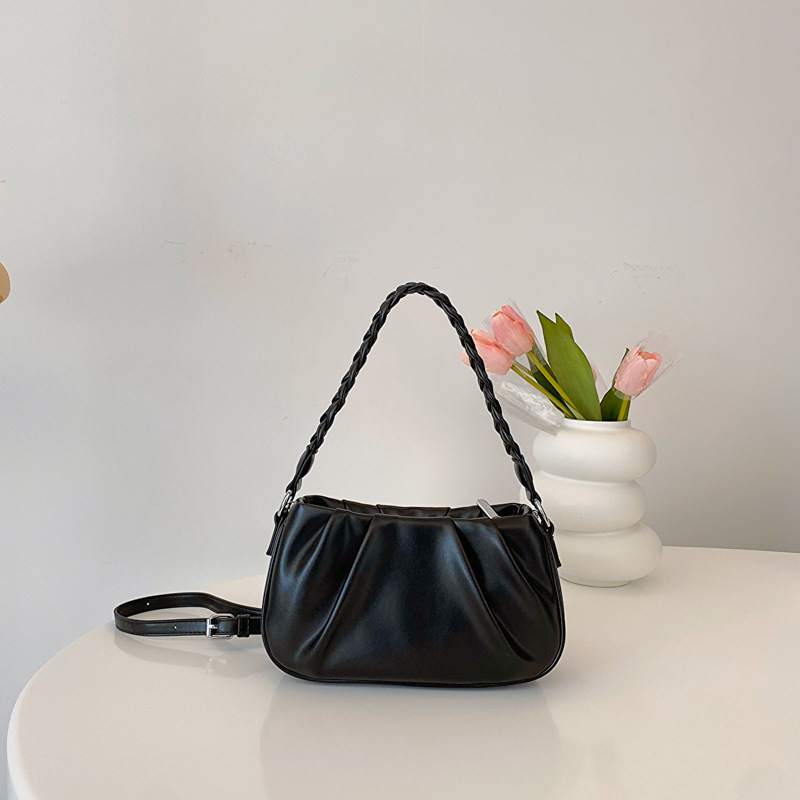 外贸爆款春夏新款简约百搭复古褶皱纯色单肩斜跨小方包跨境