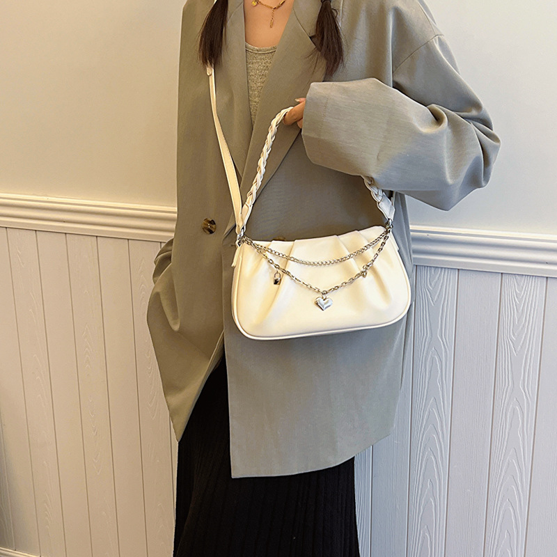 2025流苏大容量托特月牙潮流单肩女包休闲简约斜挎pu复古饺子包包