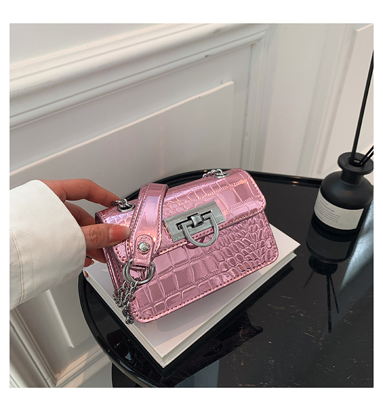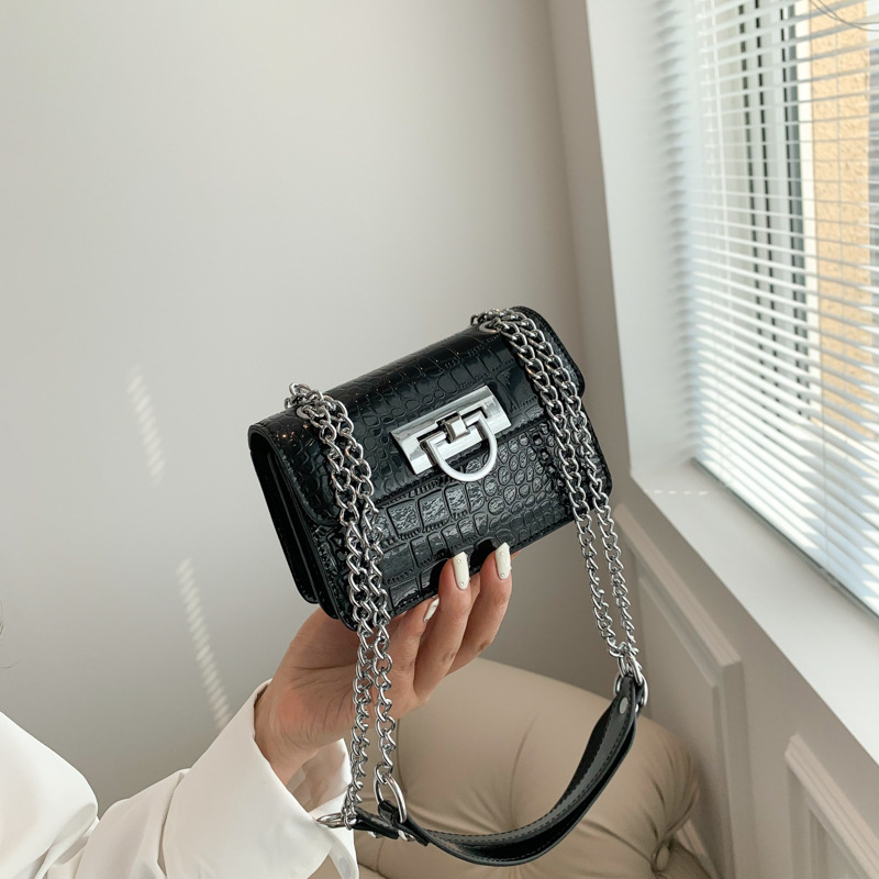 跨境新款小包包网红流行时尚百搭口红包经典石头纹链条斜挎包