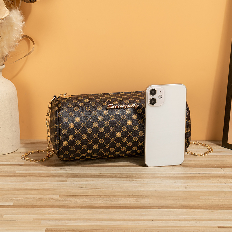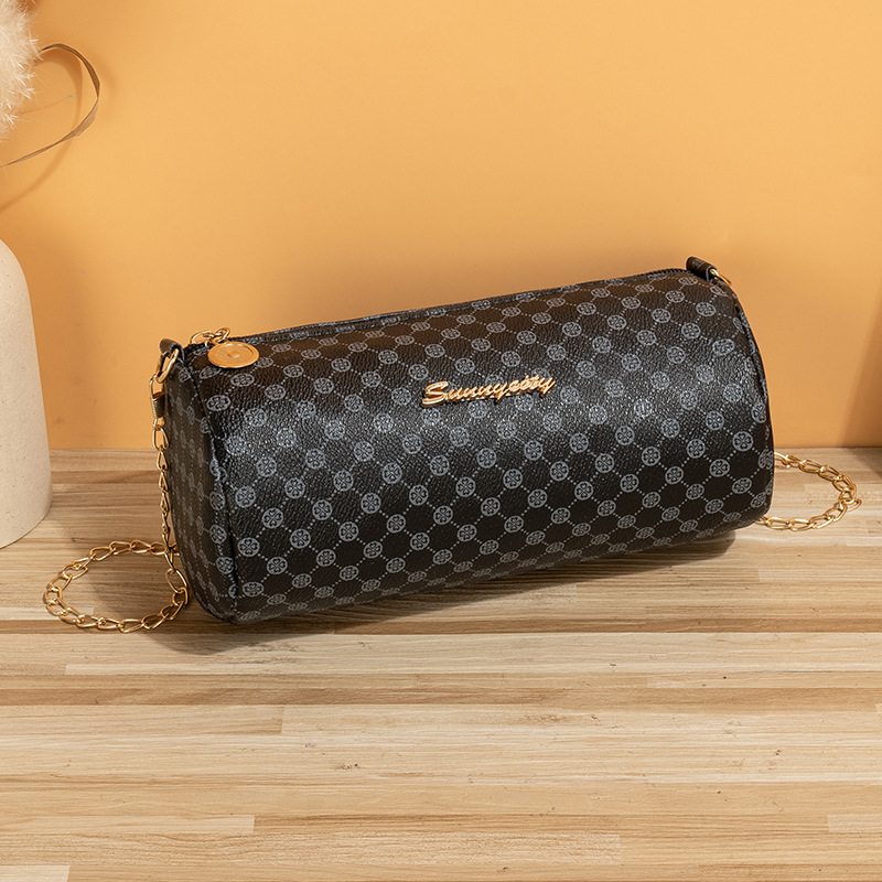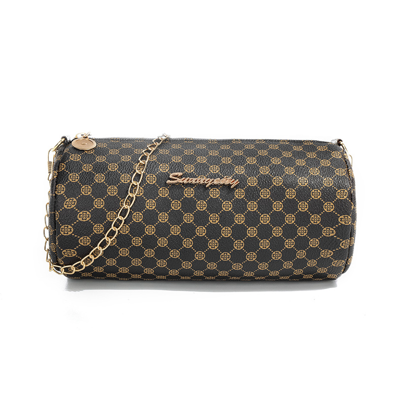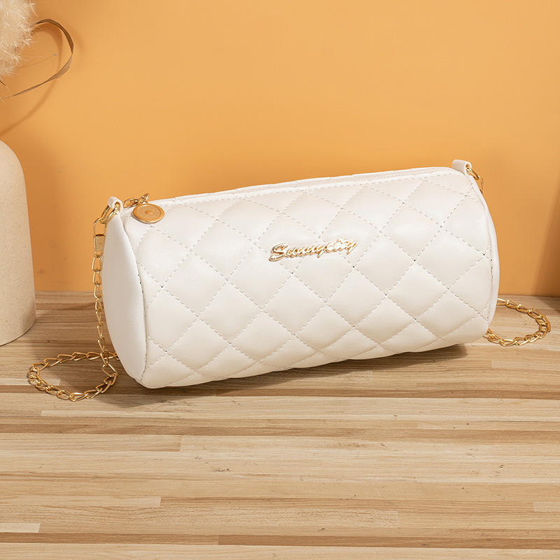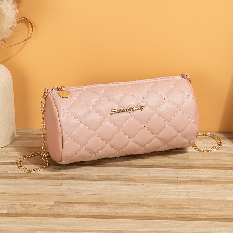 迷你链条圆筒包时尚复古印花枕头包个性菱格绣花手机零钱包斜挎包