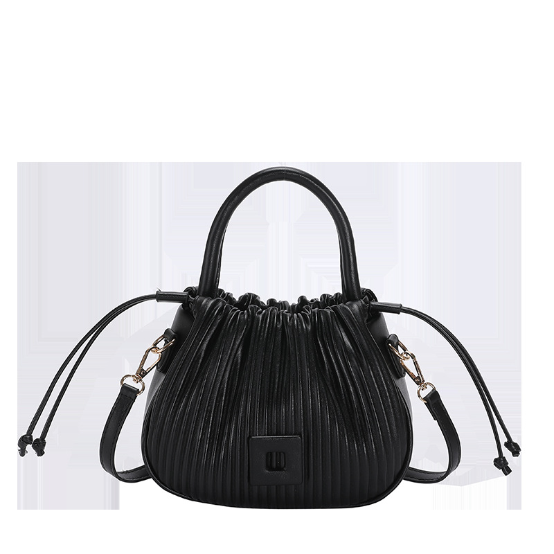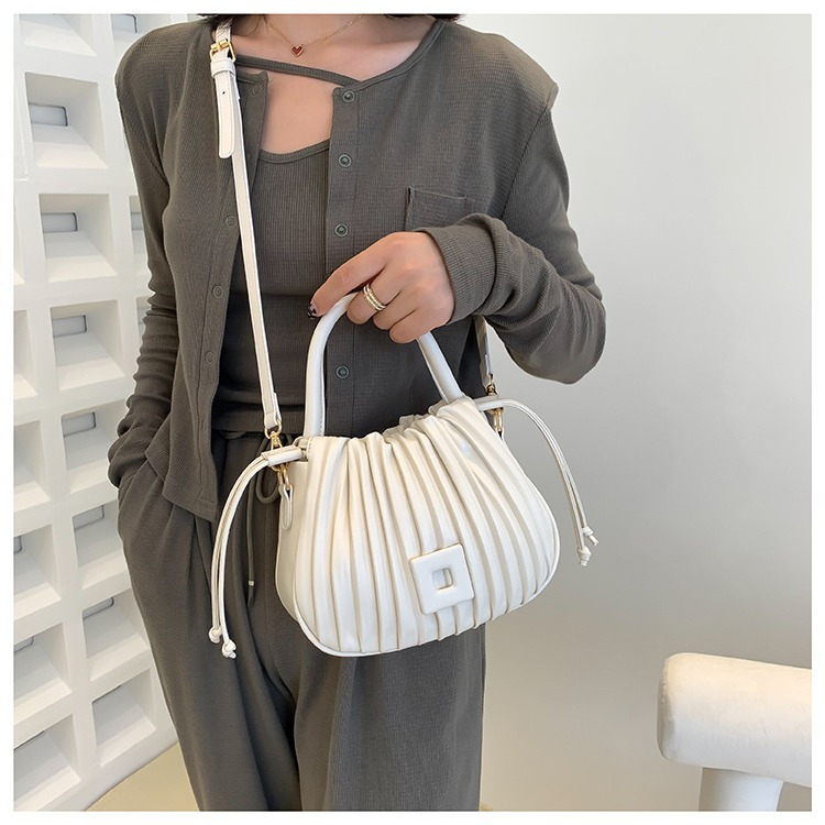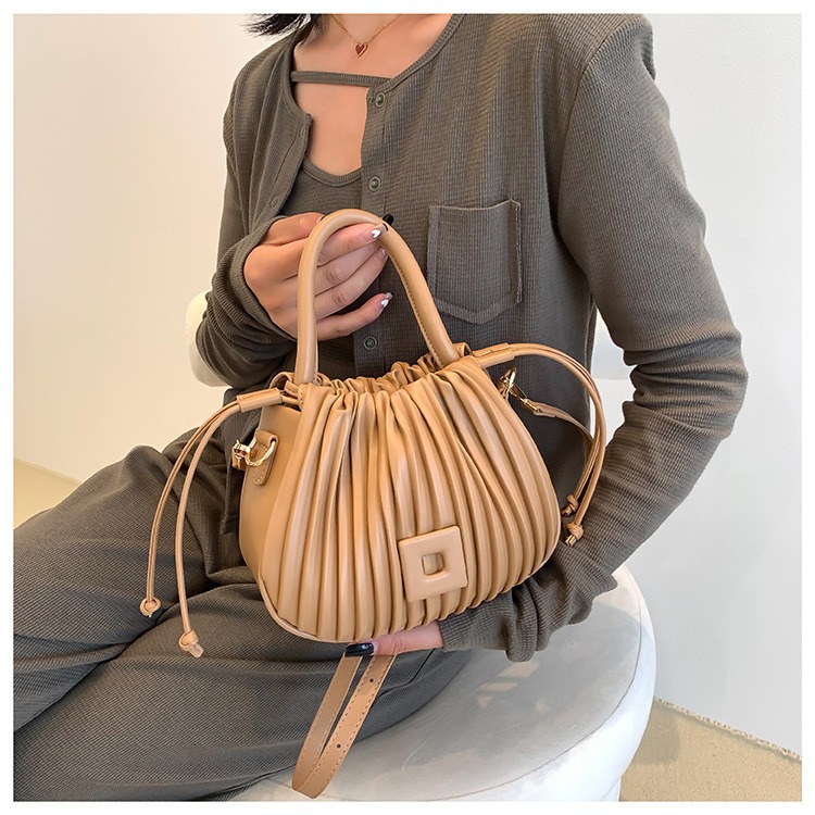时尚质感小众百搭单肩斜挎包手提小包包女新款褶皱抽绳水桶包
