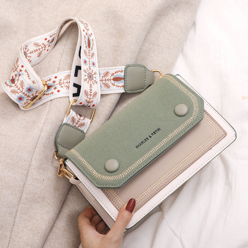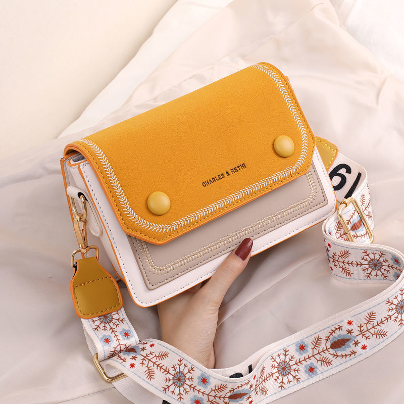 小包包新款时尚潮网红洋气宽带撞色斜挎ins百搭四季女包