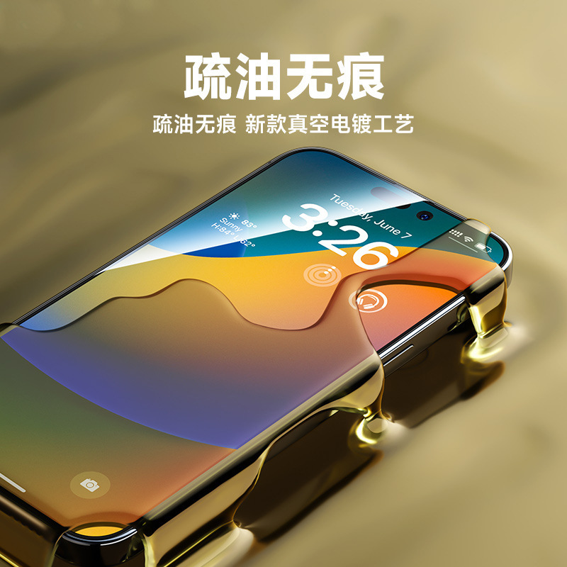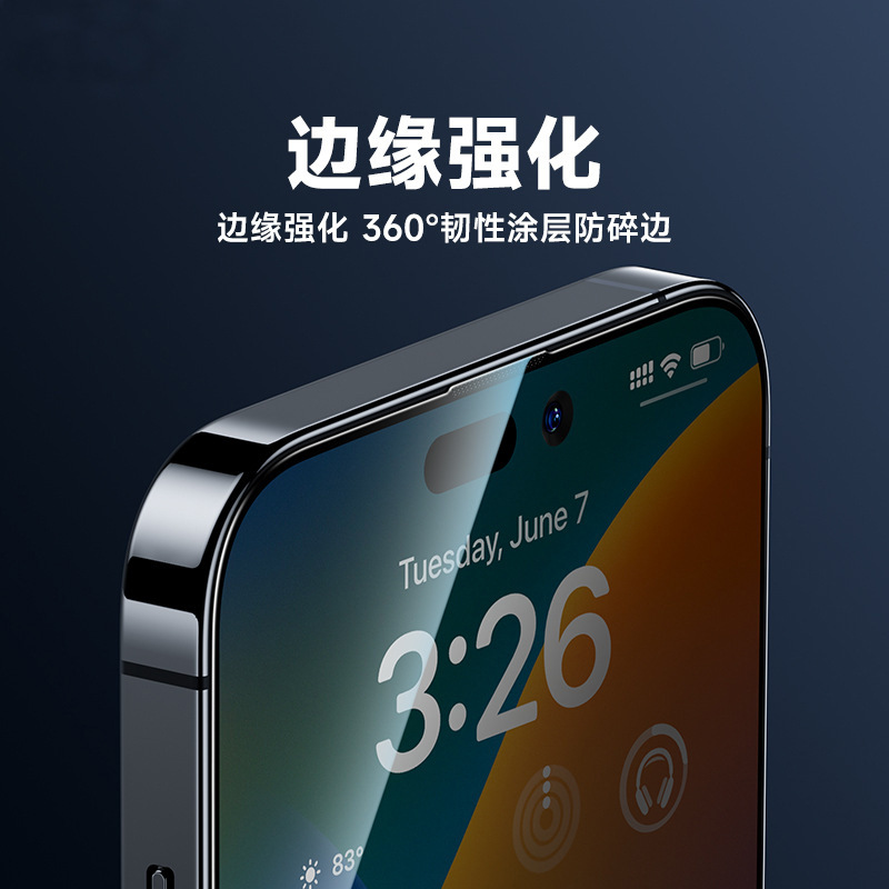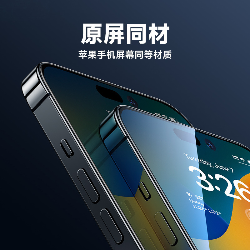 苹果iphone15pro高清防窥防指纹康宁高铝玻璃手机蓝猩钢化膜