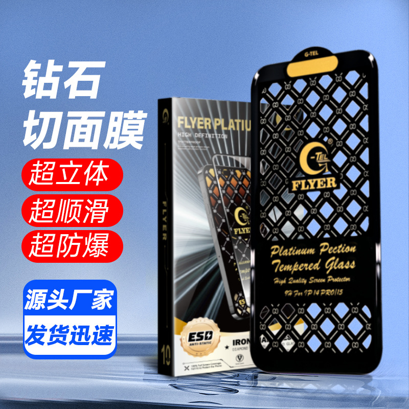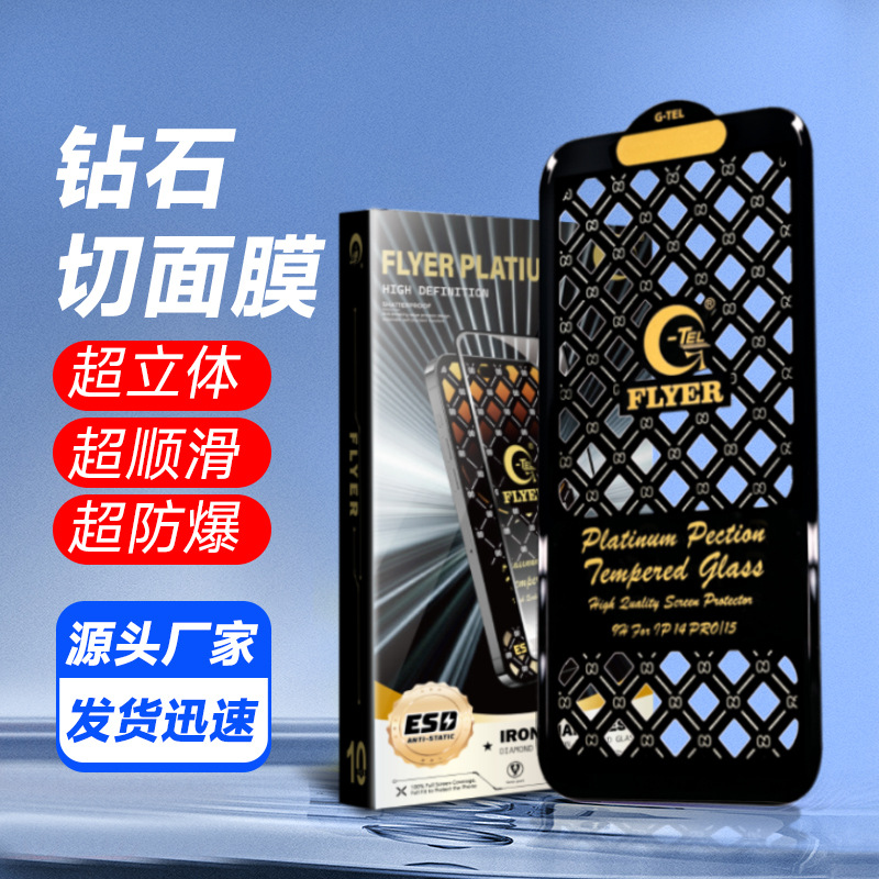 钻石切面钢化膜适用iPhone15苹果14promax全屏13覆盖12贴膜手机膜