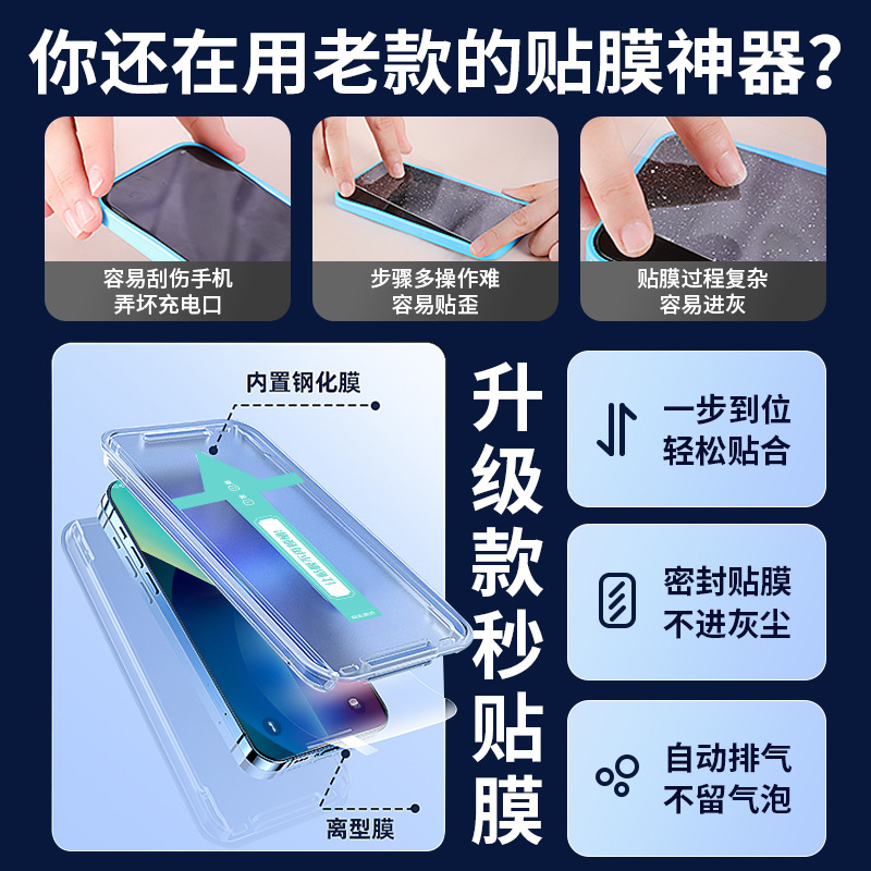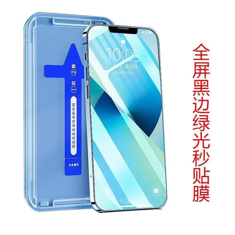 适用iphone14Promax钢化膜11绿光14Pro手机膜12/13秒贴盒保护贴膜