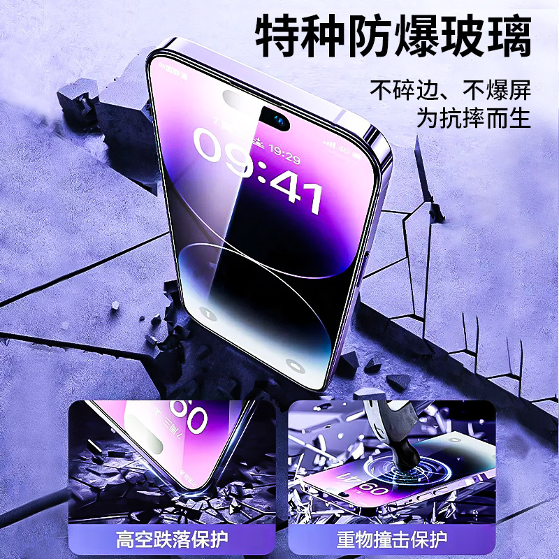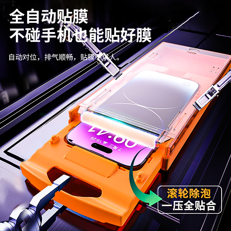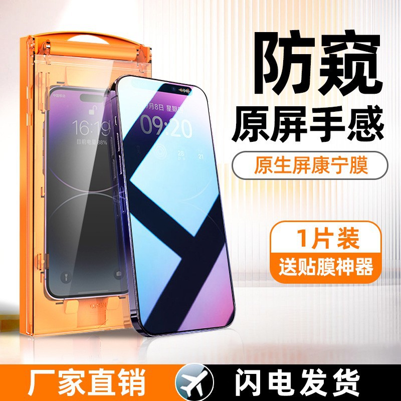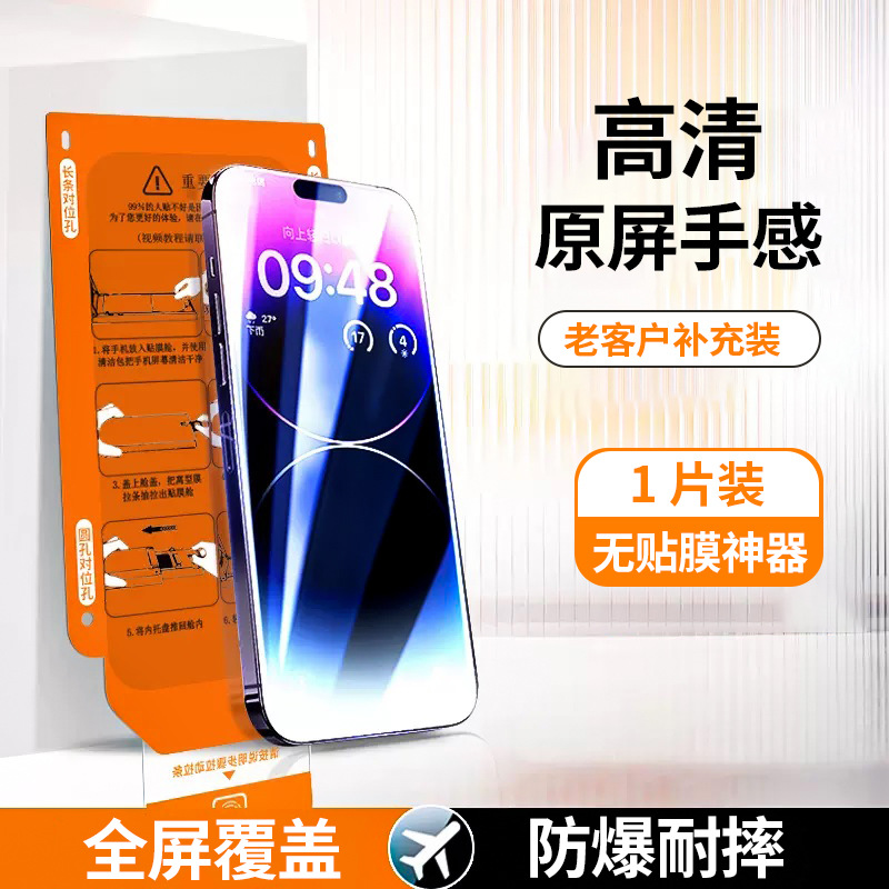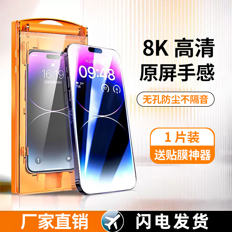 适用苹果15promax钢化膜14plus无尘仓全屏防指纹高清13贴膜神器