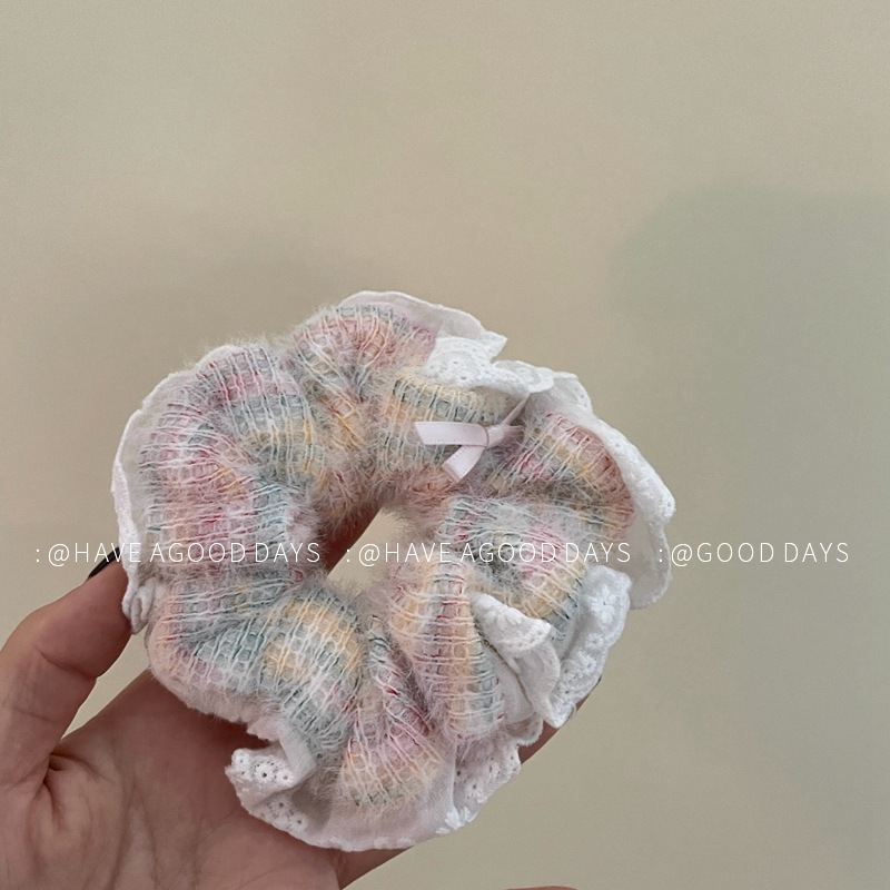 秋冬新款彩色毛线发圈蝴蝶结头绳气质小清新甜美发饰头饰百搭个性