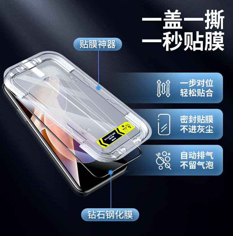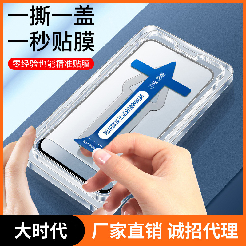 适用OPPOreno6秒贴盒钢化膜reno5/4高清手机膜全屏防摔贴膜神器
