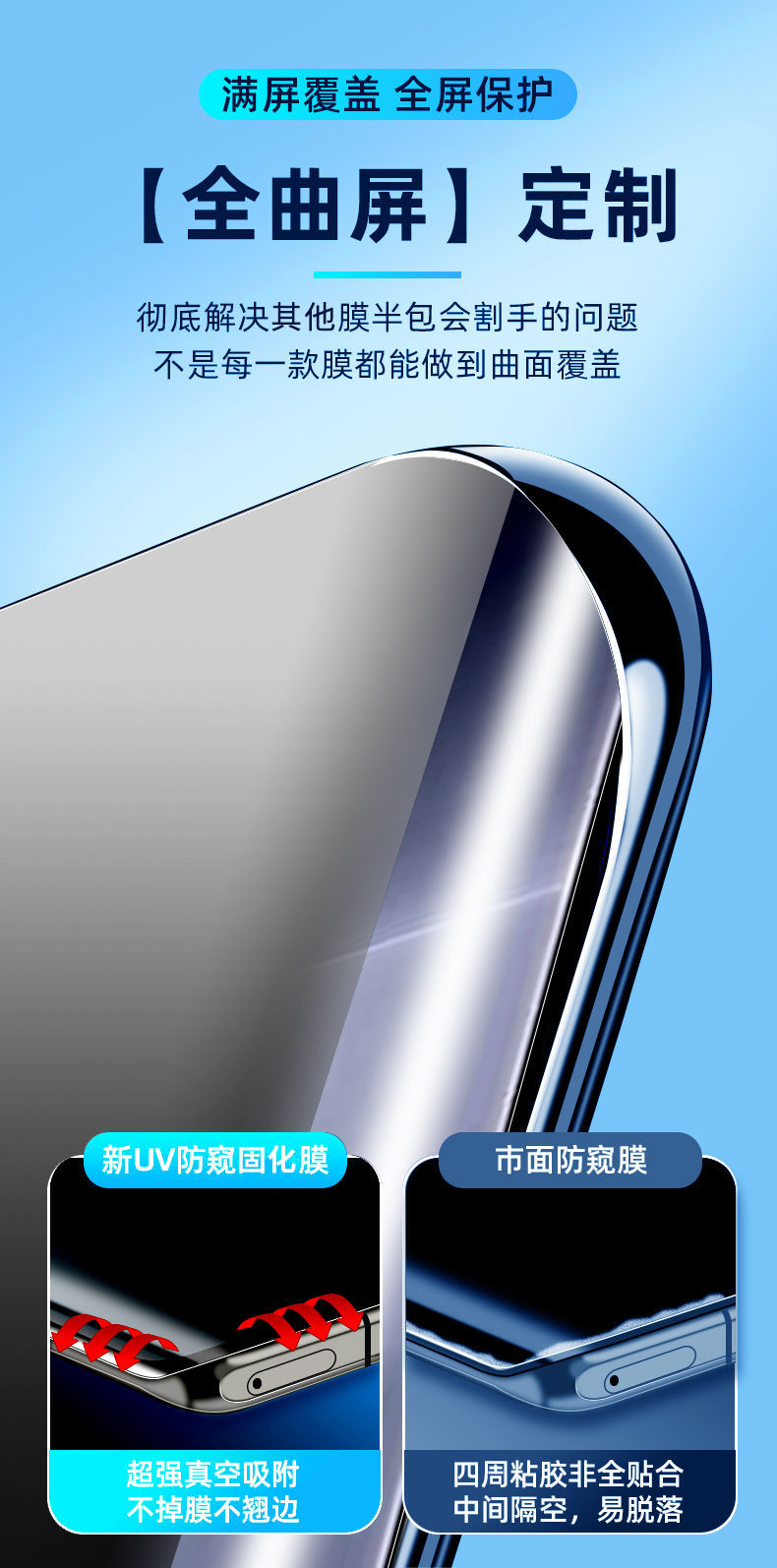 防窥款【UV曲面钢化膜】带包装-送固化灯+UV胶+工具包