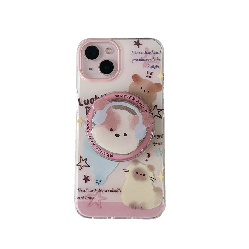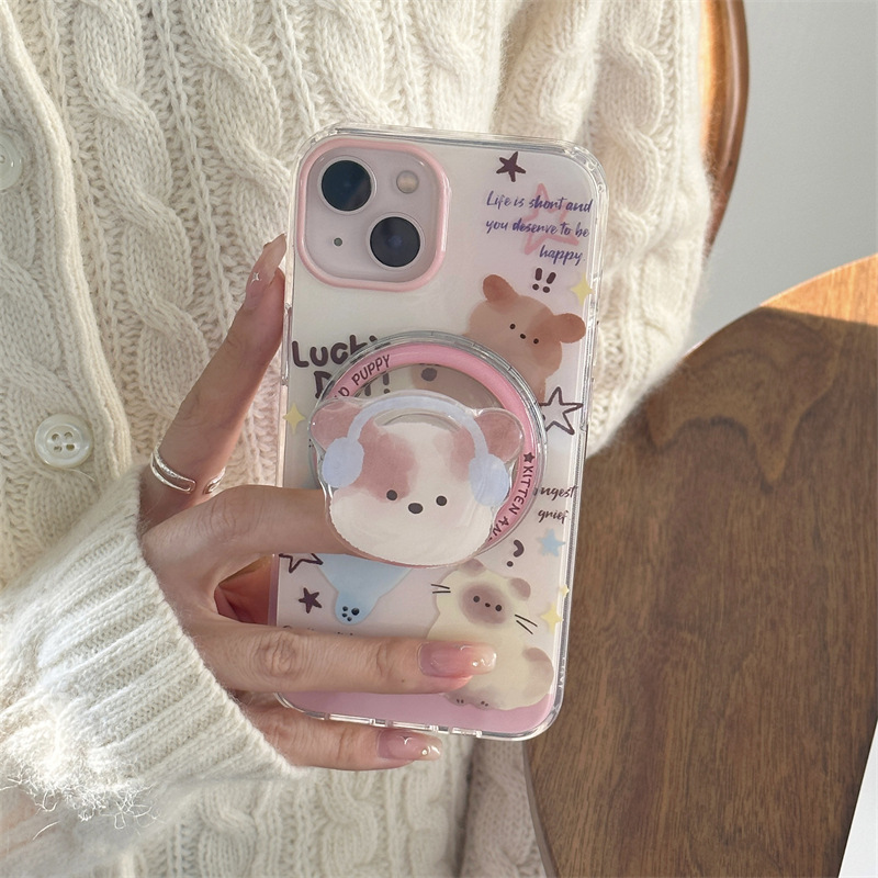 - 磁吸粉底英文猫咪+耳机小狗支架