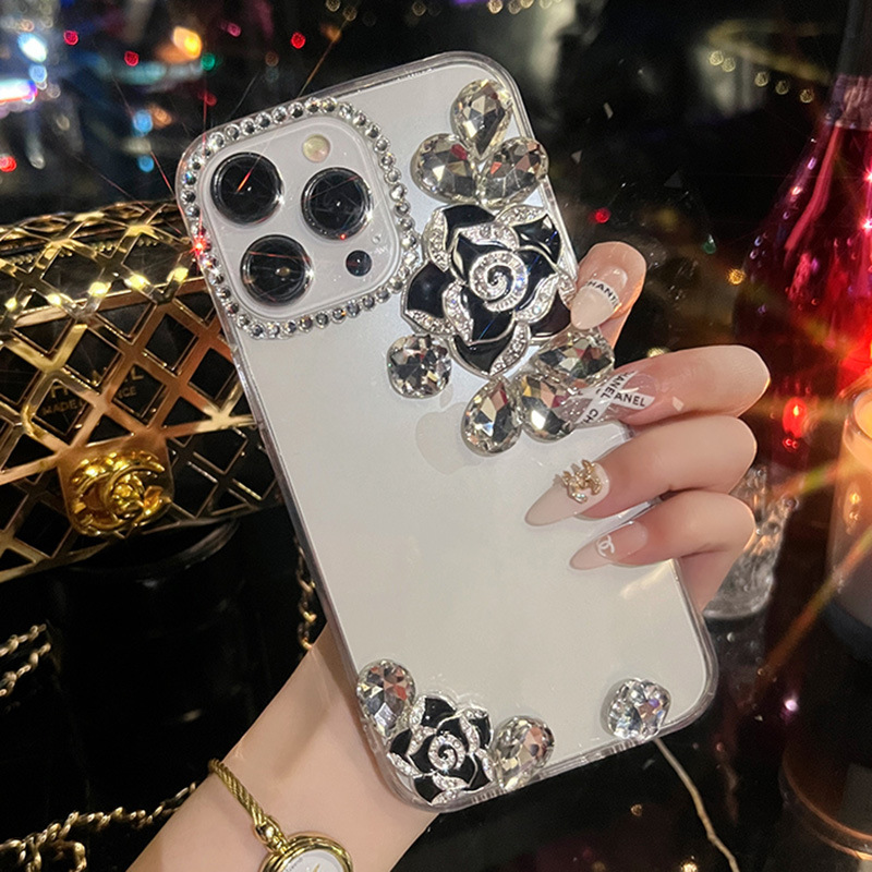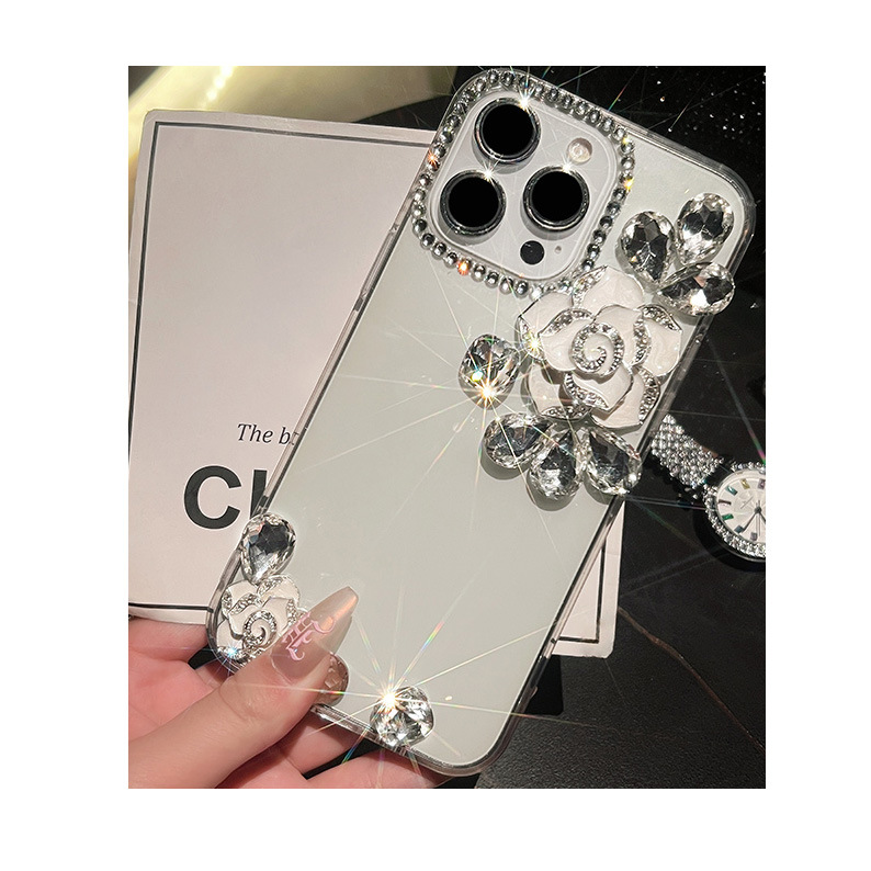 苹果15手机壳水钻山茶花iphone14promax透明硅胶保护套适用12/13