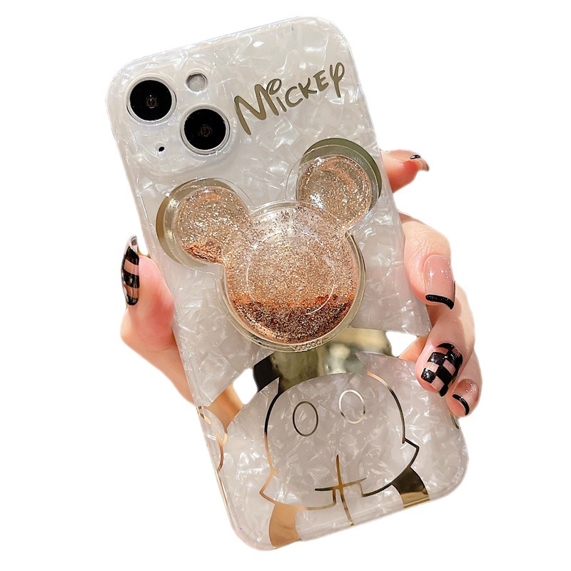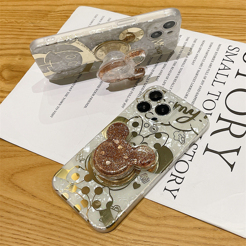 潮牌烫金贝壳纹适用苹果14Promax手机壳iPhone15流沙支架11卡通女