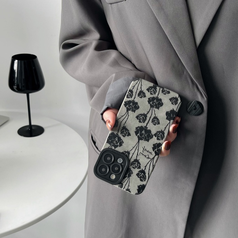 灰色玫瑰花适用苹果14手机壳iPhone13promax1512华为mate60pro/50