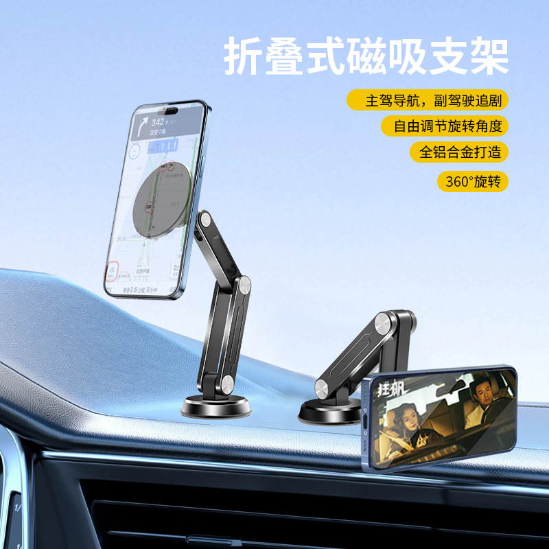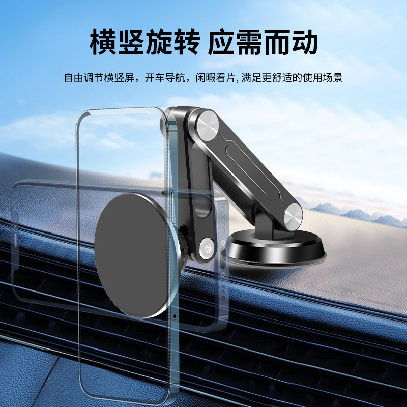 新款跨境通用磁吸车载手机导航旋转汽车仪表台支架铝合金