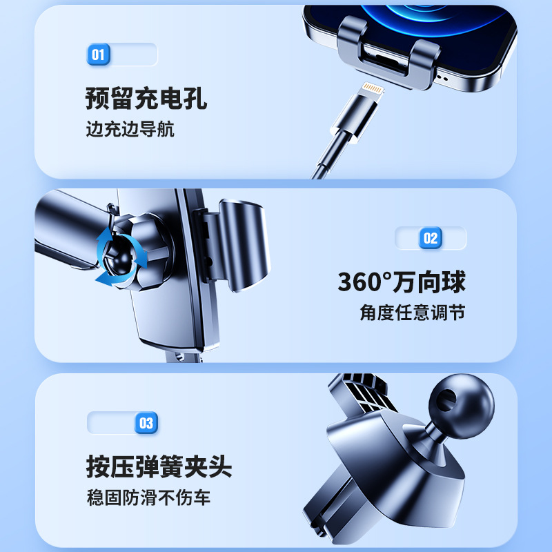 新款车载手机支架汽车重力感应支撑架卡扣式多功能出风口导航支架