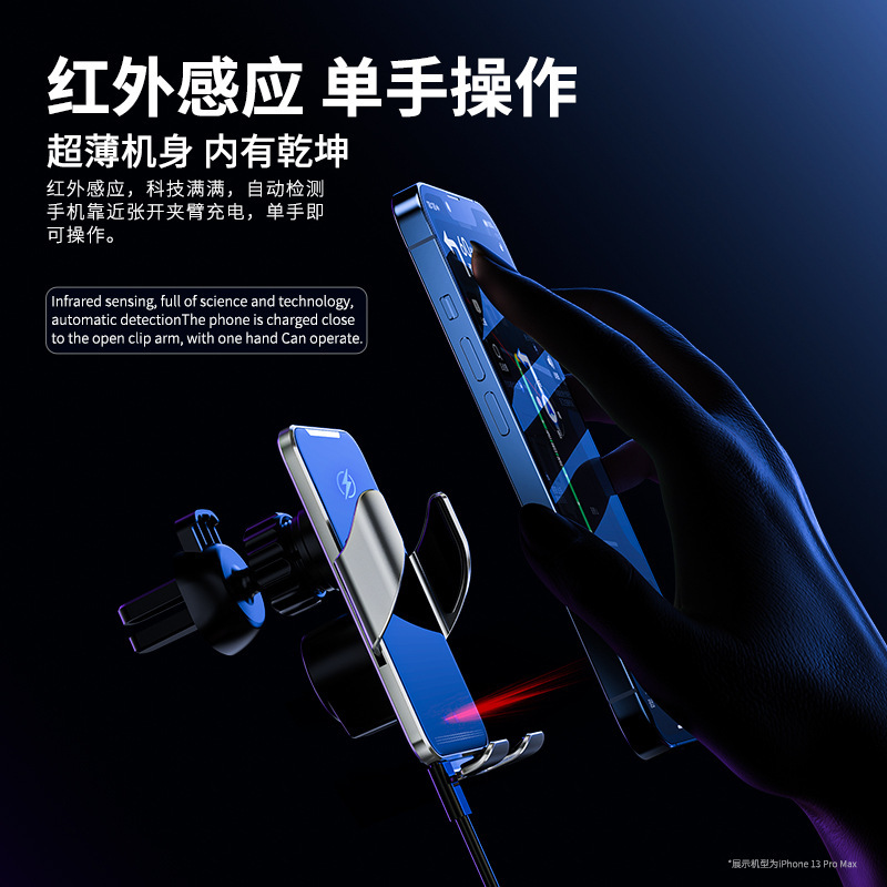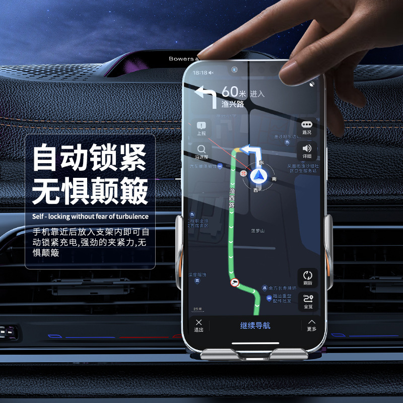 车载无线快充导航支架金属夹臂车内自动开合车载手机支架
