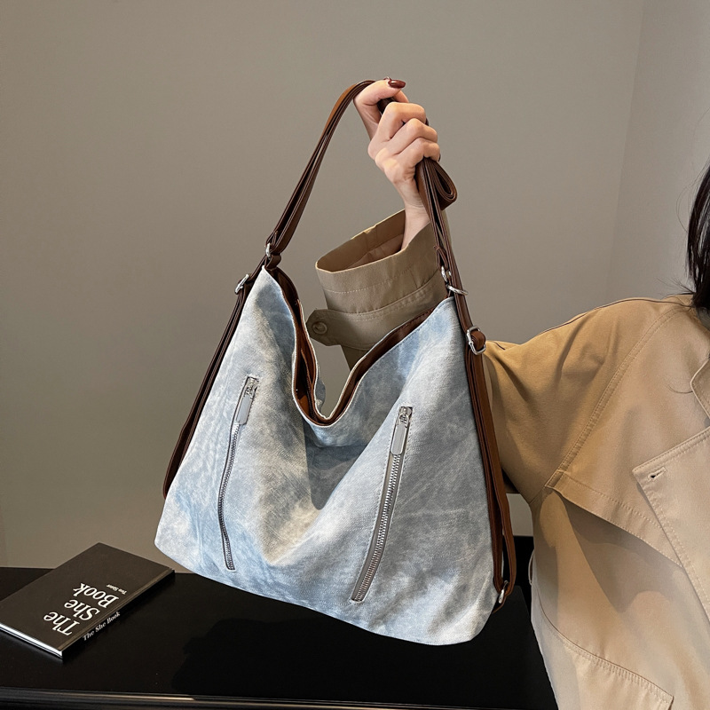 韩国小众复古拼接帆布托特包时尚百搭单肩手提包大容量通勤腋下包