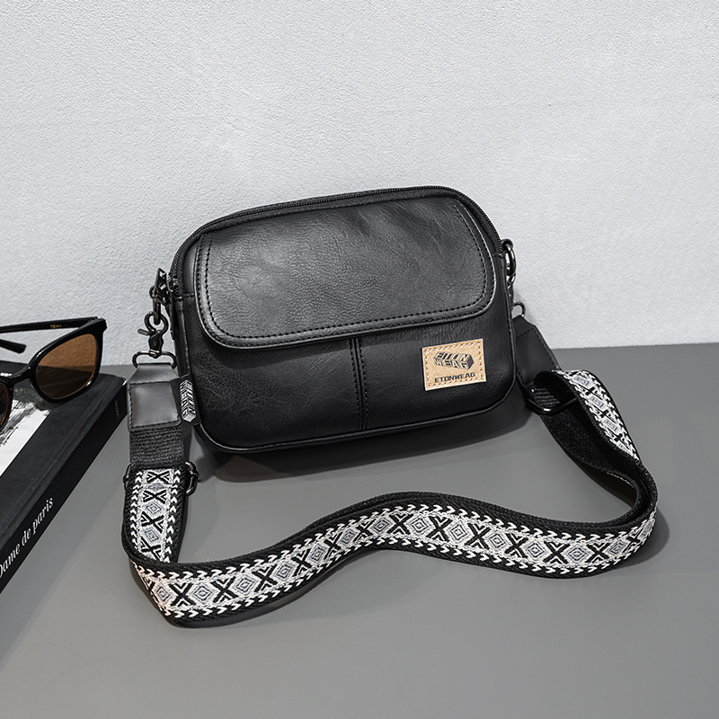 简约单肩包复古邮差包PU防水百搭中性斜挎包小众休闲潮牌手机包