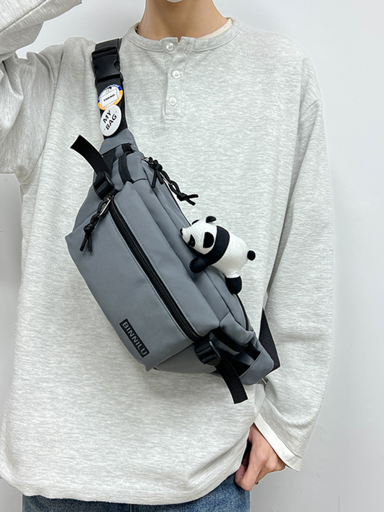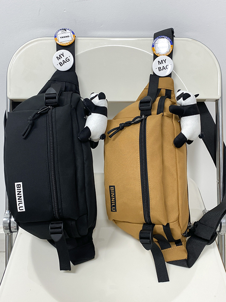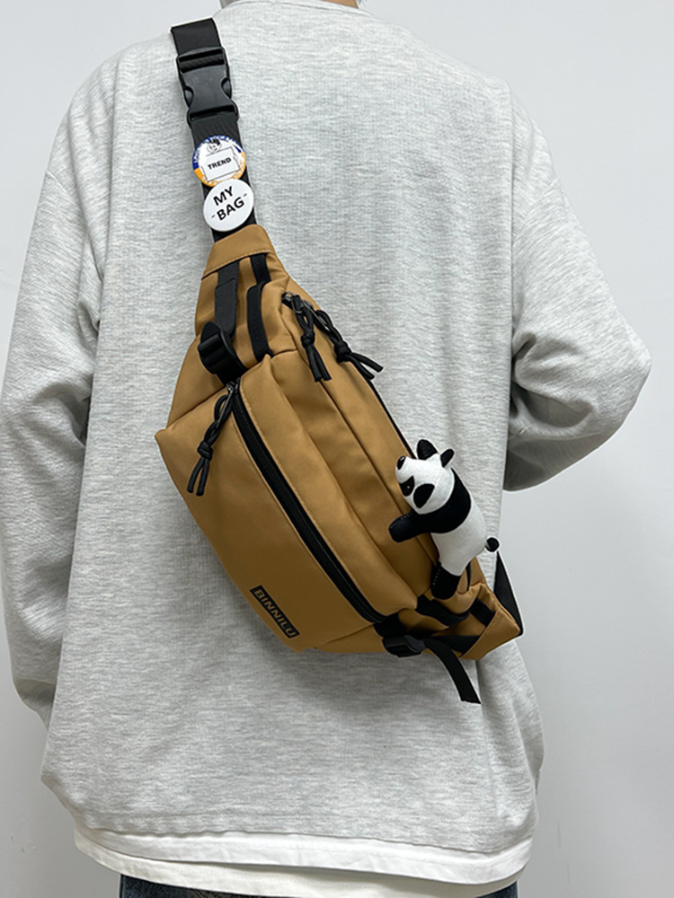潮牌复古日系简约运动胸包男百搭防水日系斜挎包骑行运动腰包女生