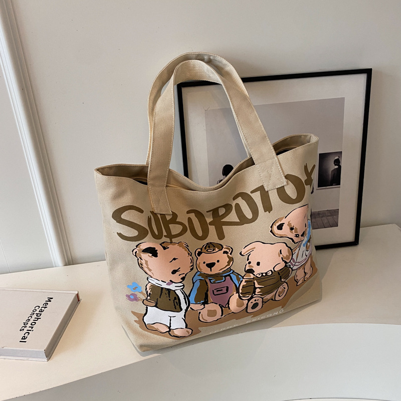 夏季时尚休闲大容量包包女包可爱卡通帆布包通勤单肩托特包妈咪包