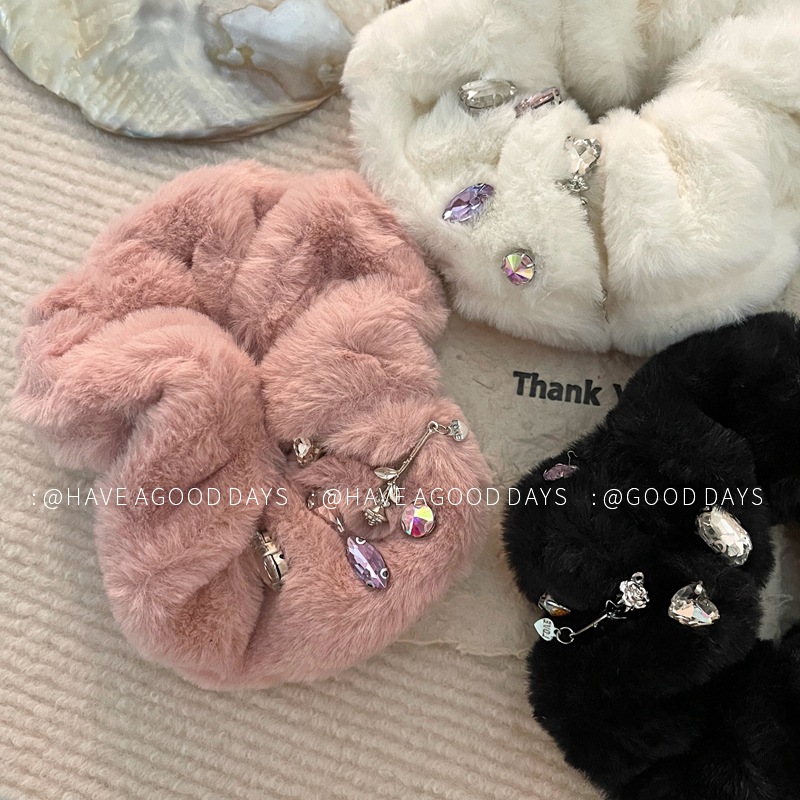 毛绒彩钻大肠发圈甜美冬季新款小众设计感高级感马尾发饰头饰气质
