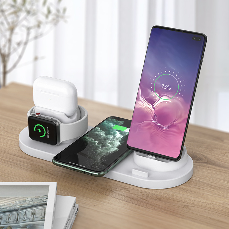 新款私模三合一充电支架 适用于苹果手机手表充电器 耳机充电座白