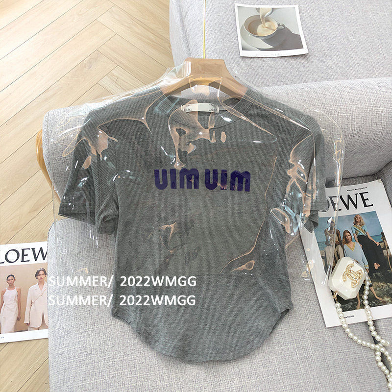 圆弧下摆短袖t恤女夏季设计感小众体恤夏季学生韩版字母印花上衣