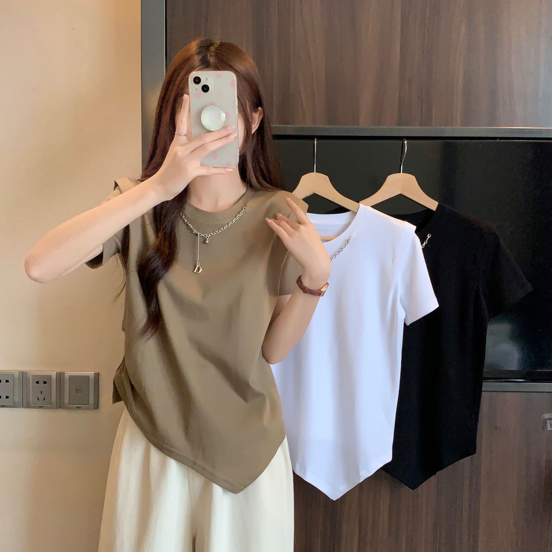 【价值高于价格】修身显瘦短袖纯色上衣夏季高腰露脐锁骨t恤女装