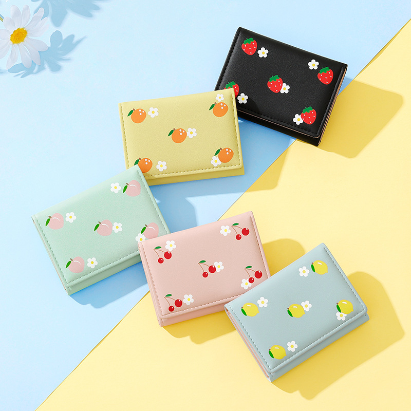 新款甜美多功能收纳时尚欧美钱包 印花迷你女三折亚马逊短款卡夹