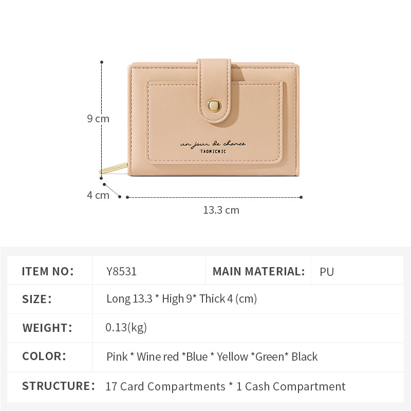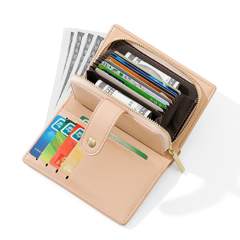 日韩拉链大容量百搭女钱包 跨境新款PU多卡位短款折叠零钱包