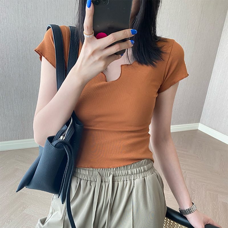【价值高于价格】纯棉短款T恤女高腰短袖露脐装卷边修身百搭上衣