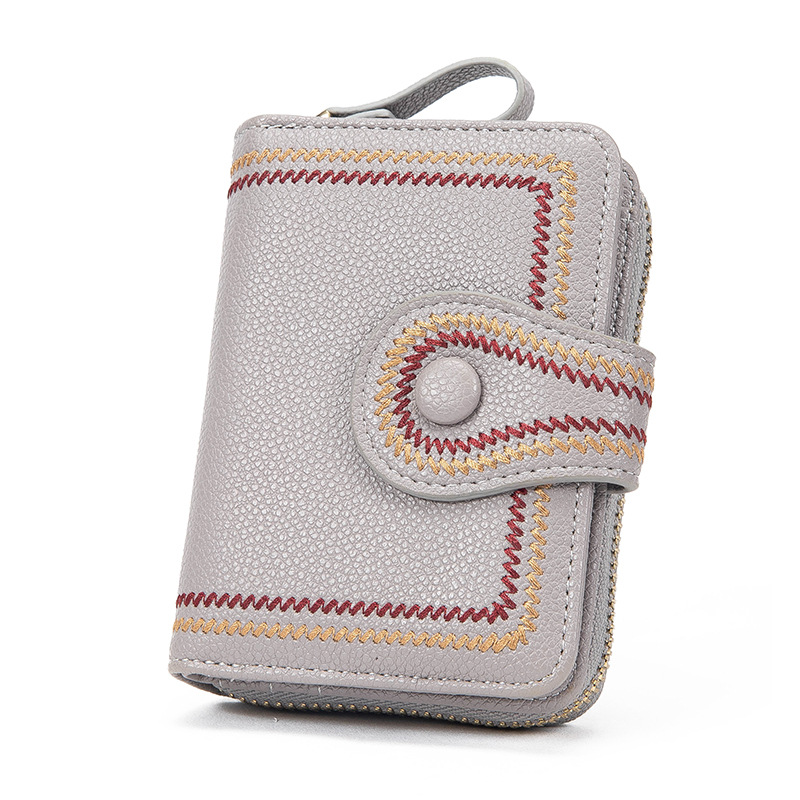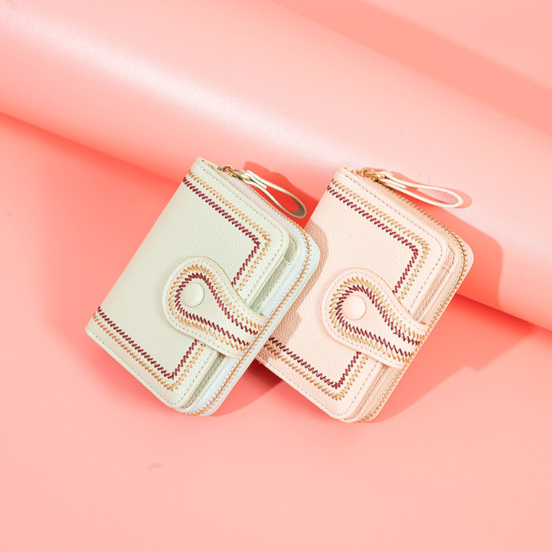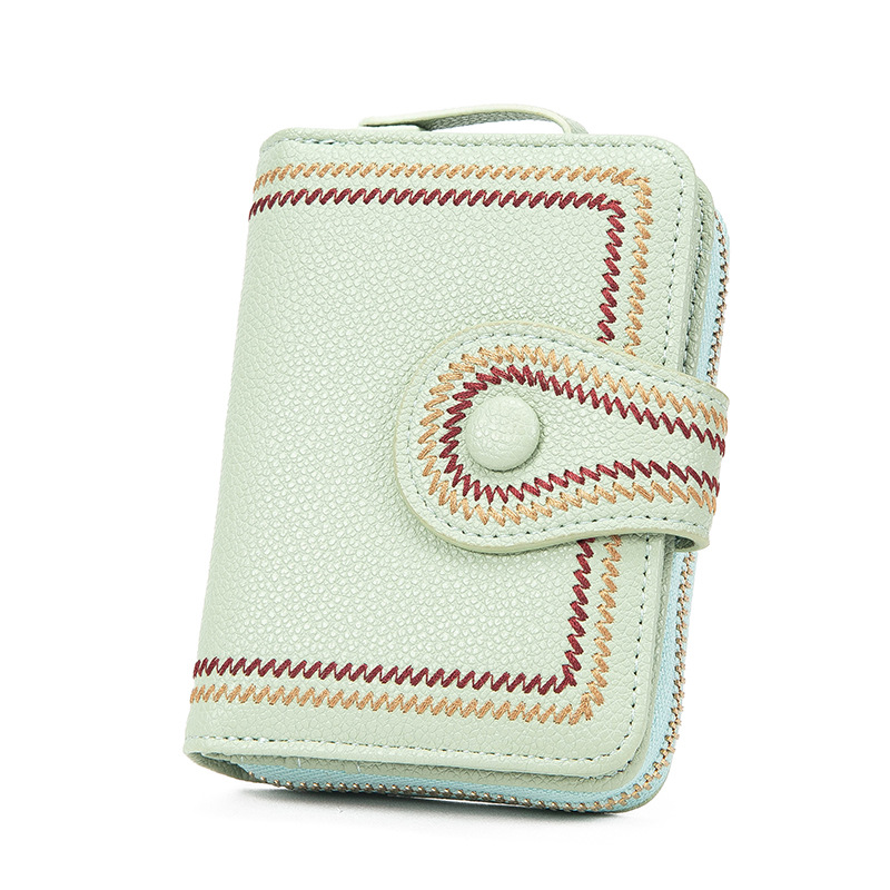 时尚钱包女短款零钱包 新款潮女士风琴卡包绣花钱包女士钱包