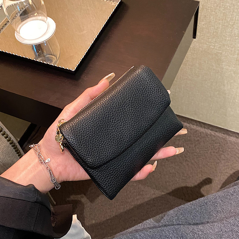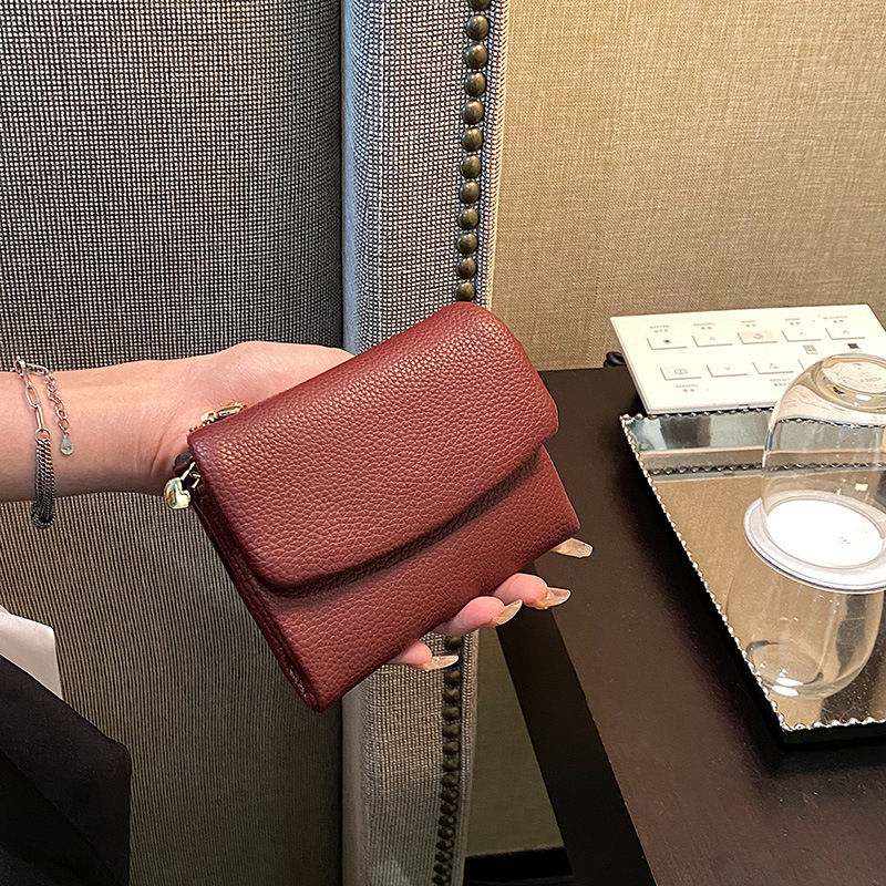 女包新款荔枝纹钱包女士短款折叠钱夹大容量卡包外贸