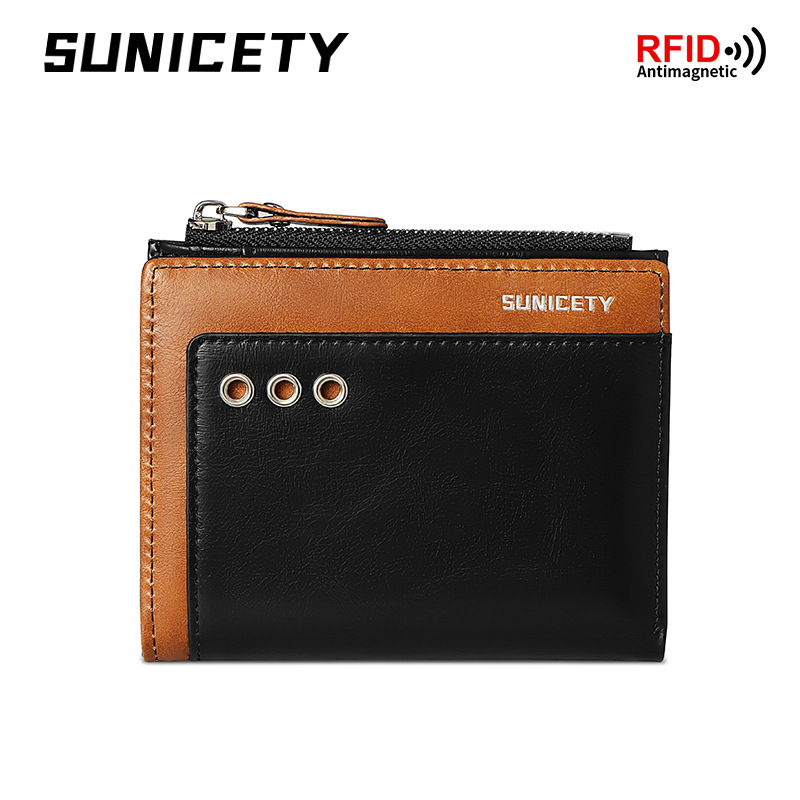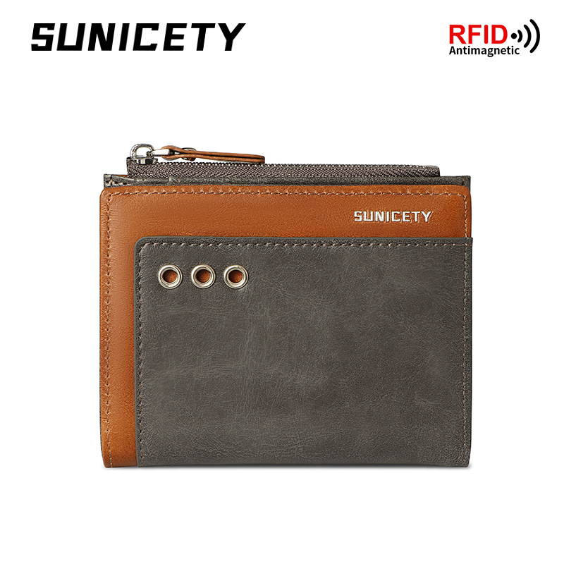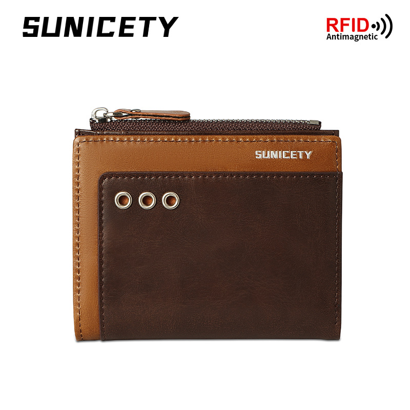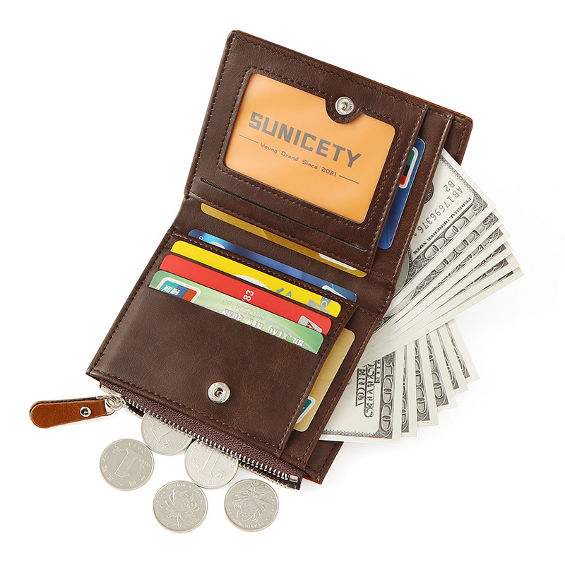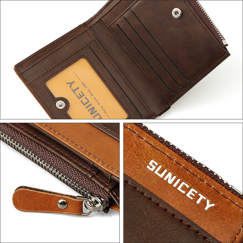 新款男士多卡位拉链短款防盗刷rfid外贸批发美金皮夹卡片零钱包男