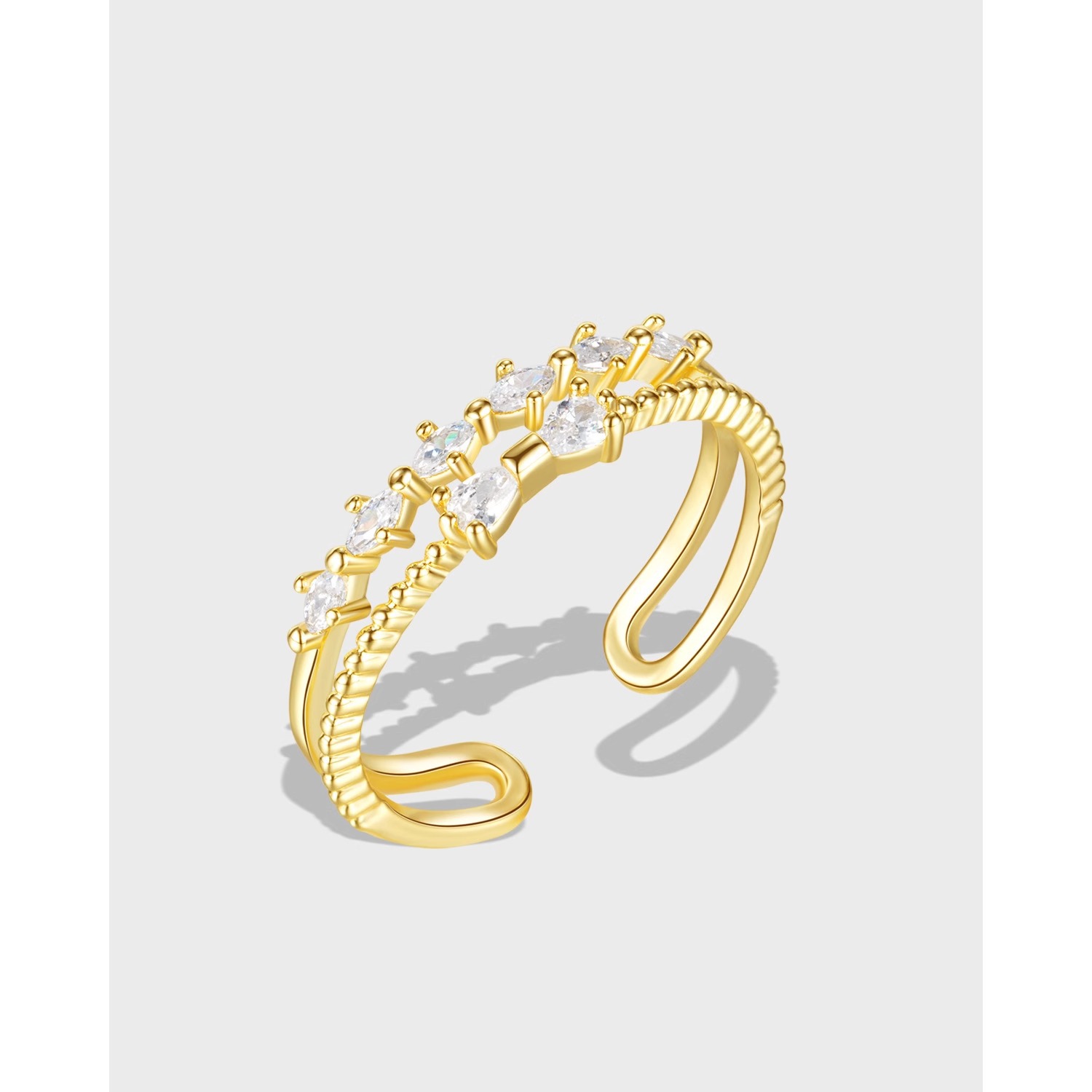 ins潮网红轻奢小众镶钻戒指简约时尚设计感开口食指戒气质铜指环